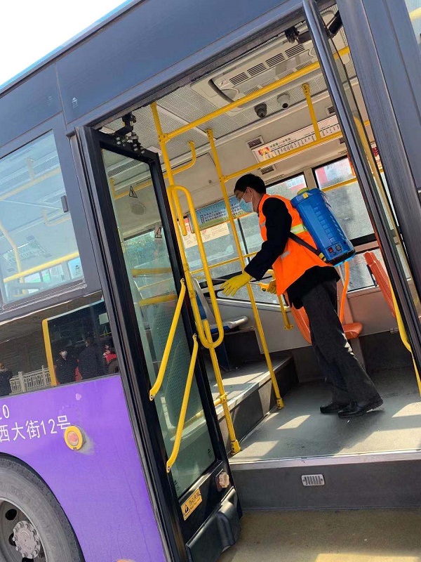 安排專人對公交站臺、車輛內部進行消殺滅菌工作